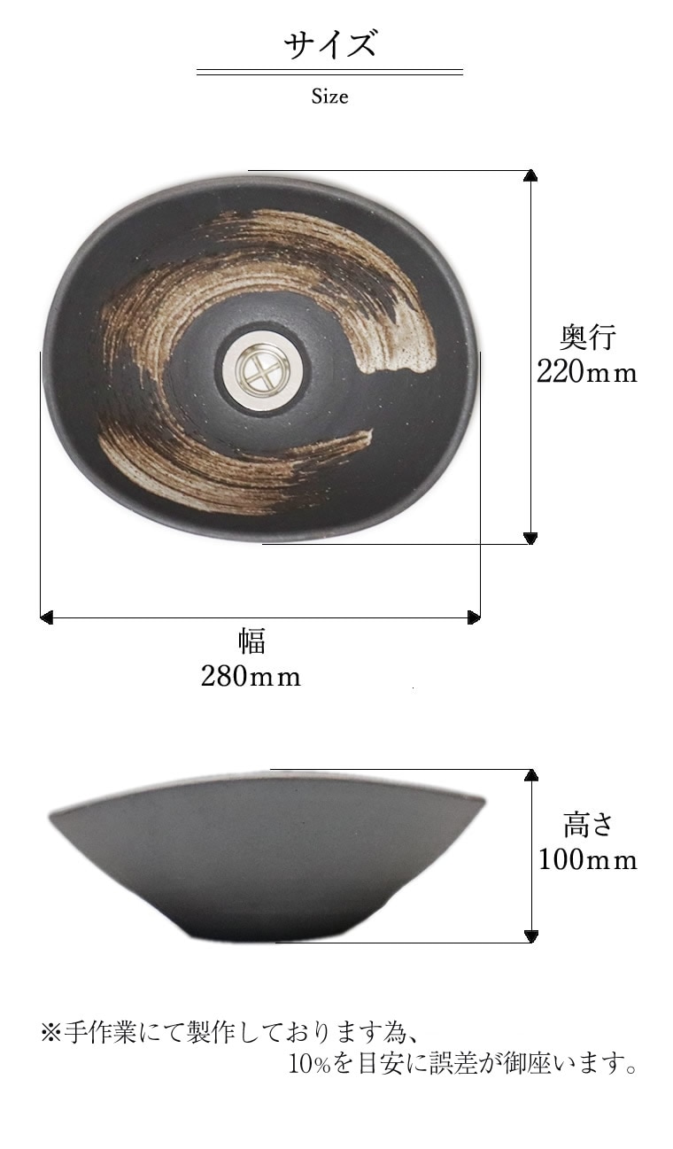 サイズ 直径280×奥行220×高さ100ミリ 【手作りの為、10%を目安に誤差が御座います。】